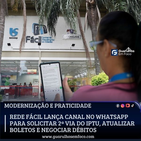 A Prefeitura de Guarulhos disponibilizou um novo canal de atendimento digital via WhatsApp para facilitar o acesso dos contribuintes a serviços como segunda via do IPTU, parcelamentos e regularização de débitos. O número é (11) 2414-0451 e funciona exclusivamente por mensagens de texto.