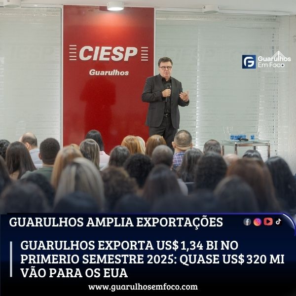No primeiro semestre de 2025, a cidade de Guarulhos registrou exportações no valor de US$ 1,34 bilhão, o que representa crescimento de 10,7% em relação ao mesmo período de 2024, conforme levantamento do Departamento de Relações Internacionais e Comércio Exterior da Fiesp com base nos dados regionais do Ciesp. As importações chegaram a US$ 1,61 bilhão, um aumento de 12,8%, resultando em déficit na balança comercial de US$ 269,1 milhões.