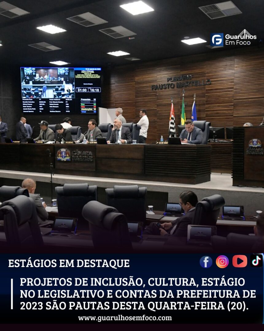 A Câmara Municipal de Guarulhos se prepara para uma Sessão Ordinária nesta quarta-feira (20/08), com a discussão e votação de três projetos em primeira discussão. Destaque para a proposta de André Alves (Cidadania), que visa apoiar a inclusão de pessoas com deficiência audiovisual em eventos esportivos e culturais.