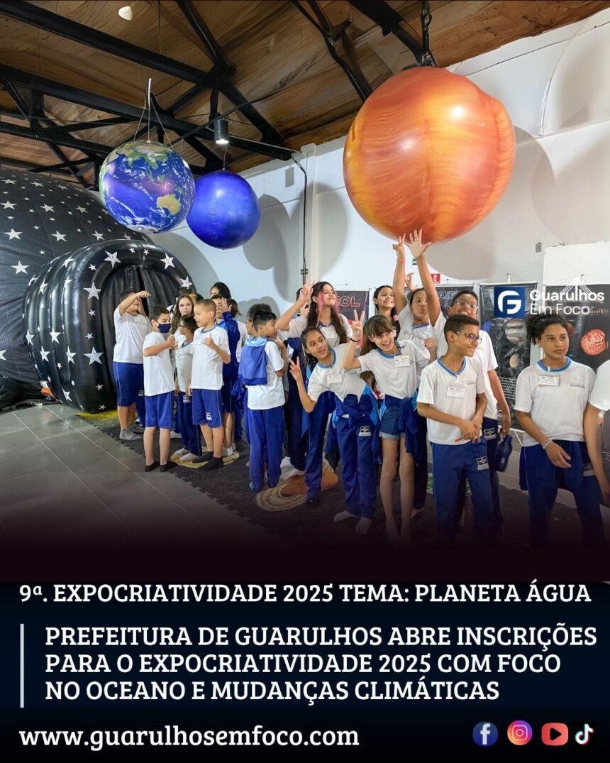 Promovida pela Prefeitura por meio da Secretaria de Ciência, Tecnologia e Inovação, a 9.ª edição da ExpoCriatividade, parte da Semana do Conhecimento de Guarulhos, está com inscrições abertas, a mostra reúne projetos de professores, estudantes da educação infantil ao ensino fundamental I, da EJA e integrantes dos CEUs. O evento ocorre entre 20 e 24 de outubro no Centro Municipal de Educação Adamastor.