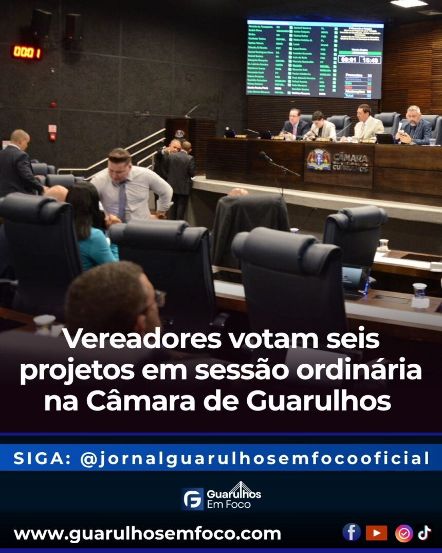 A Câmara Municipal de Guarulhos realiza nesta quarta-feira (12) sua 67ª Sessão Ordinária de 2025, com seis projetos na pauta para discussão e votação. Todos os textos já receberam parecer das comissões técnicas permanentes e abordam temas que vão de arborização urbana à proteção animal e empreendedorismo feminino.