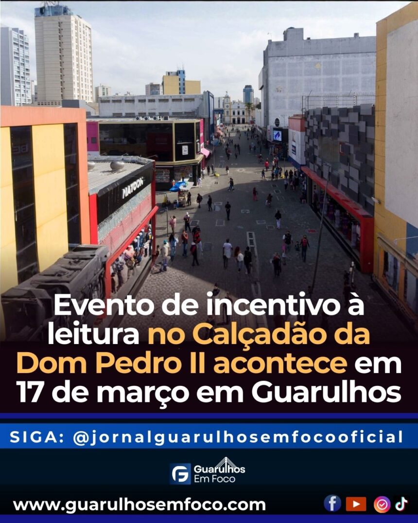 O Centro de Guarulhos será palco de uma manhã dedicada aos livros no próximo dia 17 de março. Das 10h às 13h, o calçadão da Calçadão da Dom Pedro II recebe a ação Promovendo a Leitura, iniciativa que leva literatura e atividades culturais para o espaço público.
