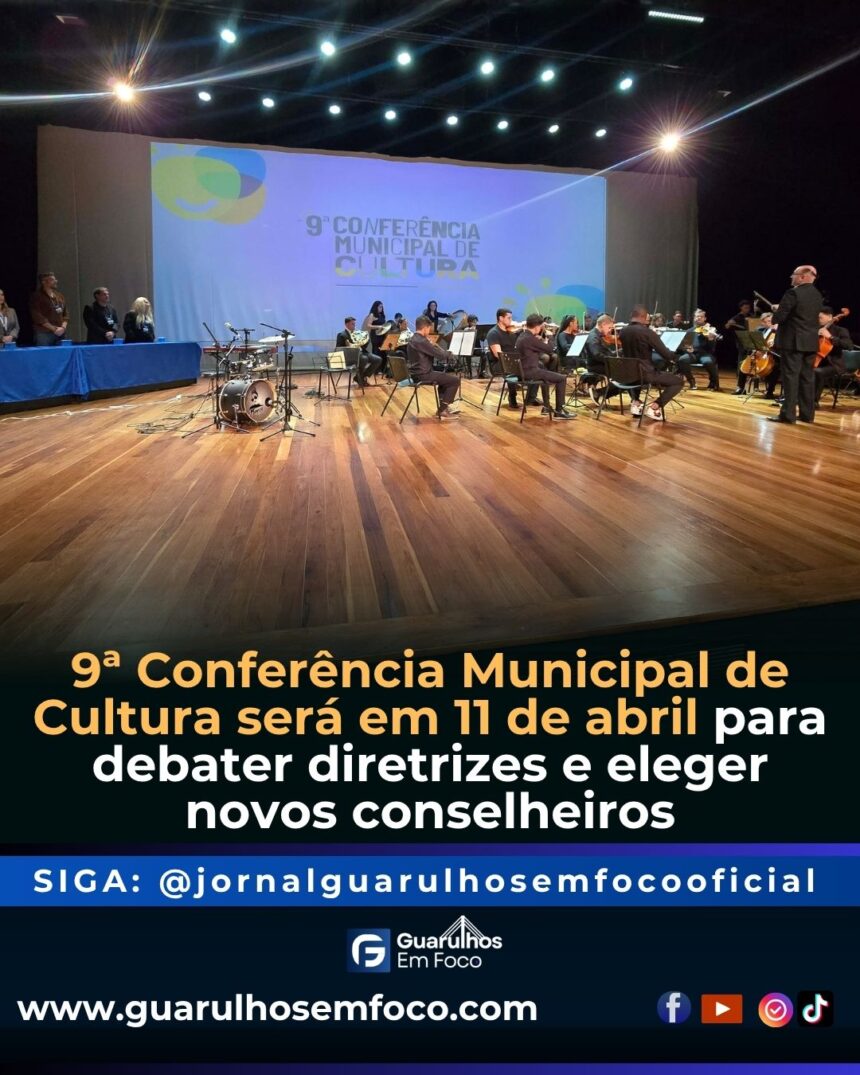 A Prefeitura de Guarulhos promove, no dia 11 de abril, a 9ª Conferência Municipal de Cultura, considerada o principal espaço de participação social para definição de diretrizes culturais no município. O encontro acontecerá das 8h às 18h, no CEU Ponte Alta, com o tema “Guarulhos: Democracia e Direito à Cultura”.