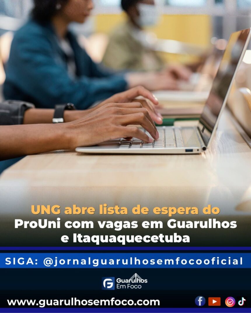 A Universidade Guarulhos (UNG) disponibiliza vagas por meio da lista de espera do Programa Universidade para Todos (ProUni). As inscrições ocorrem até esta quarta-feira (26), exclusivamente pelo portal Acesso Único, do Ministério da Educação (MEC).