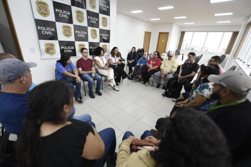 Um grupo de 13 pessoas com deficiência visual realizou, na manhã desta quarta-feira (8), uma visita técnica ao Centro de Apoio Técnico para Pessoas com Deficiência (CAT). Localizado na Delegacia Seccional de Polícia de Guarulhos, no bairro Vila Camargos, o espaço foi apresentado aos participantes do projeto Práticas Educativas para a Inclusão Social (Peis), desenvolvido pela Subsecretaria de Acessibilidade e Inclusão da Prefeitura.