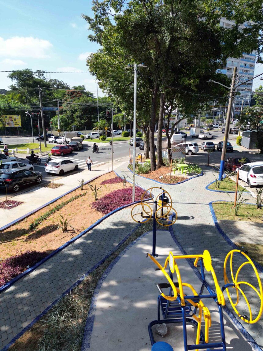 Espaço na rua Pitanga ganhou projeto paisagístico, pista de caminhada com piso intertravado e academia ao ar livre