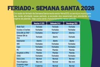 Prefeitura divulga o funcionamento dos serviços municipais neste feriado da Semana Santa.