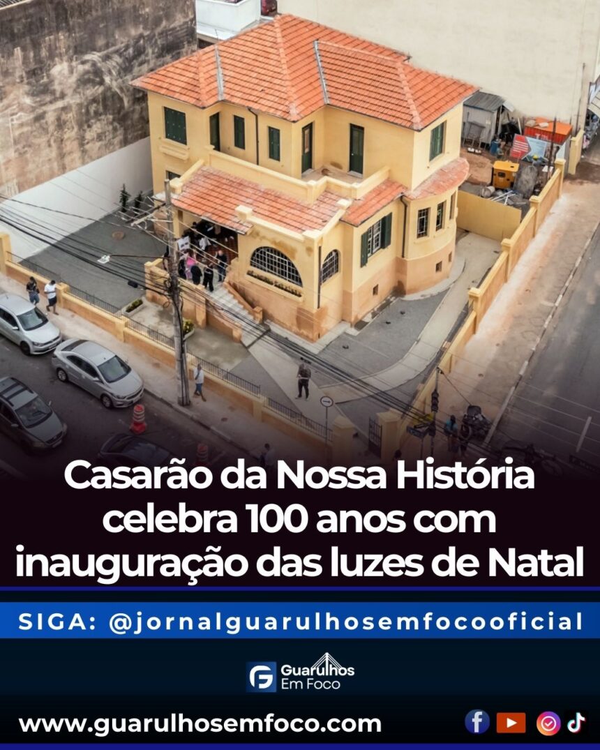 Casarão da Nossa História completa 100 anos e recebe iluminação especial de Natal nesta segunda-feira (1º), às 18h, em Guarulhos. A cerimônia, gratuita e aberta ao público, marca oficialmente o…