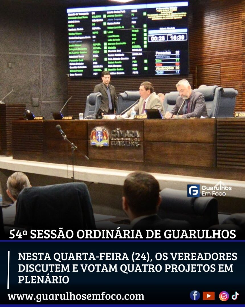 A Câmara de Guarulhos realiza nesta quarta-feira (24/09) a 54ª Sessão Ordinária de 2025, com discussão e votação de quatro projetos de destaque, entre eles o Plano Plurianual para o…