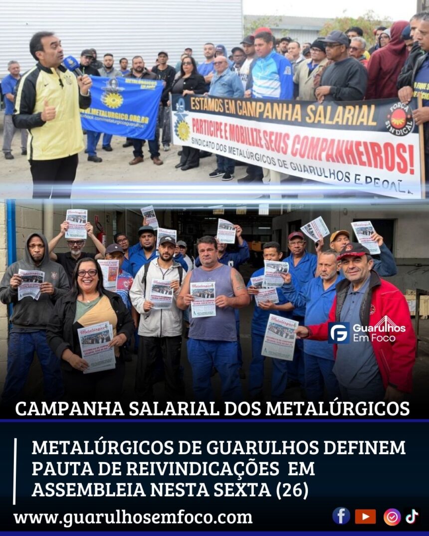 O Sindicato dos Metalúrgicos de Guarulhos e Região realiza nesta sexta-feira (26) a primeira assembleia da Campanha Salarial 2025, marcada para a sede da entidade, na rua Harry Simonsen, 202,…