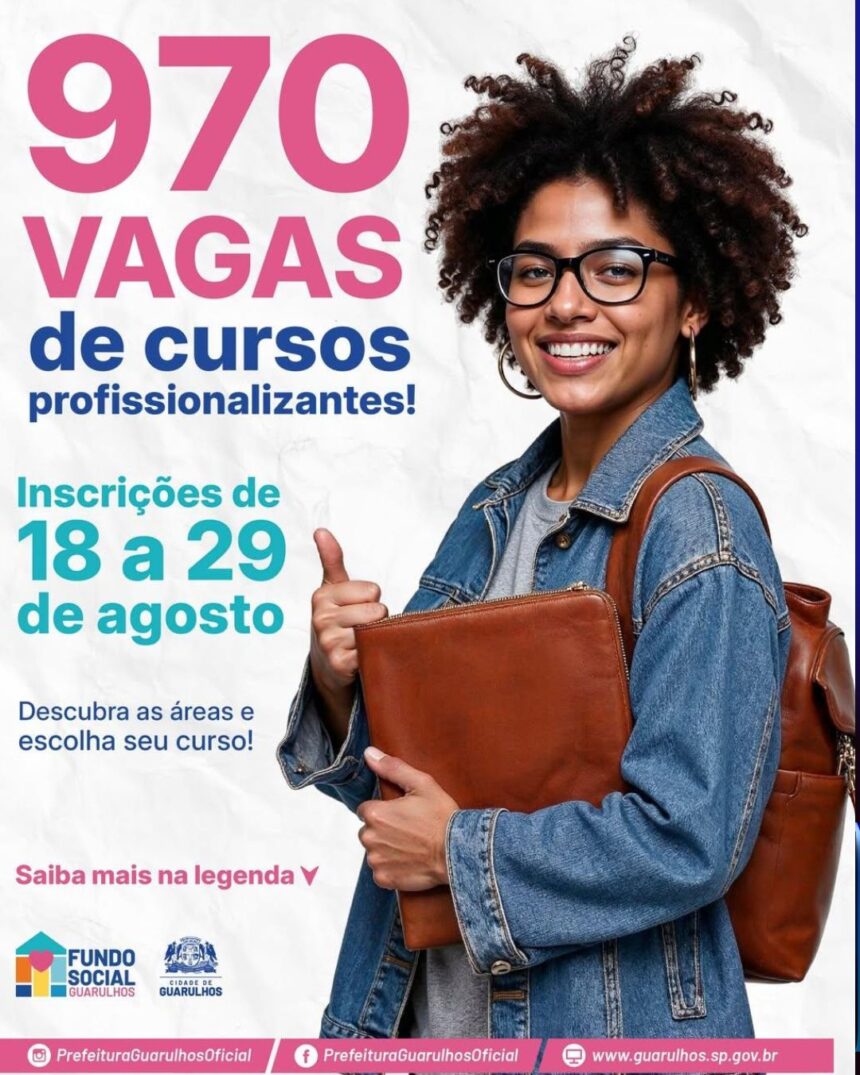 O Fundo Social de Solidariedade de Guarulhos iniciou nesta segunda-feira (18) as inscrições para 970 vagas em cursos profissionalizantes gratuitos. A iniciativa contempla áreas como gastronomia e beleza, com o…