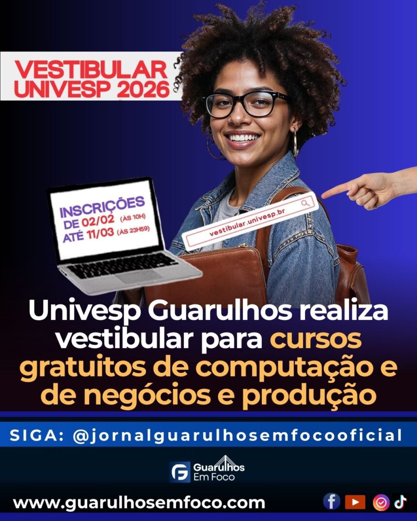 O Polo Guarulhos da Universidade Virtual do Estado de São Paulo (Univesp), vinculada à Prefeitura por meio da Secretaria de Ciência, Tecnologia e Inovação (SCTI), recebe até dia 11 de…